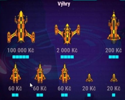 Odkryj všech 20 střel v herním poli. Pokud střely zcela zasáhnou celou loď, vyhráváš částku podle výherní tabulky uvedené výše, a to podle velikosti zasažené lodě.