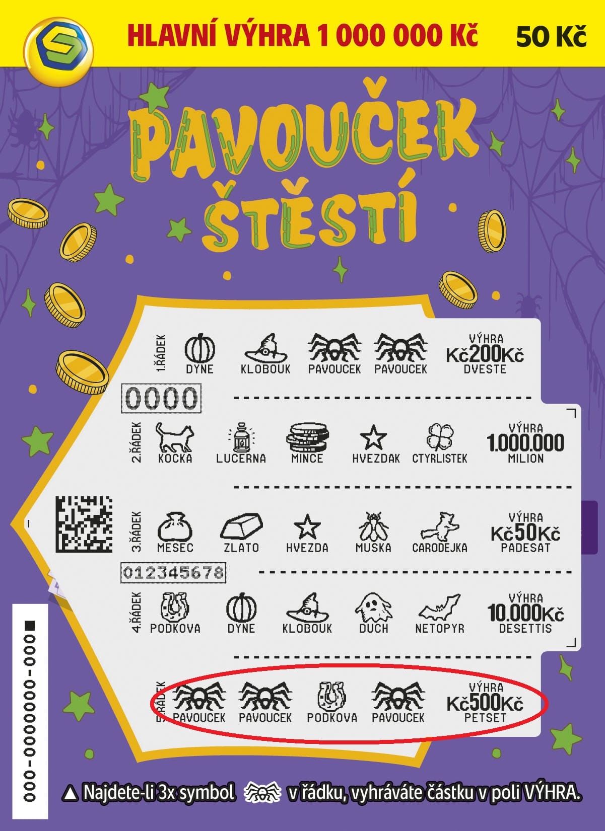 Zahrajte si stírací los Pavouček štěstí od Sazky a vyhrajte až 1 000 000 Kč! Objevte své štěstí a užijte si napínavou hru, která vám může přinést skvělou výhru.