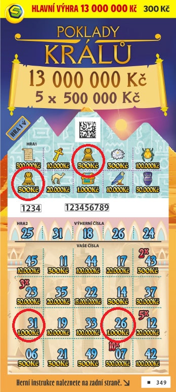 Stírací los Poklady králů od Sazky