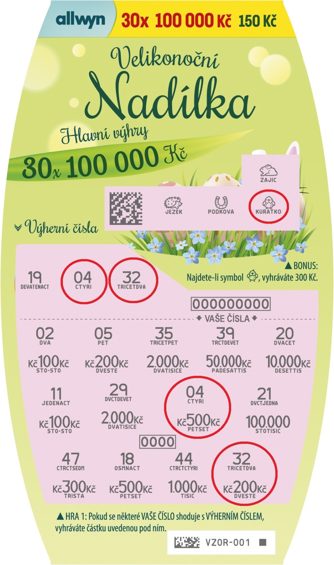 Pokud v této části po odkrytí najdeš symbol kuřátka, automaticky vyhráváš 300 Kč.