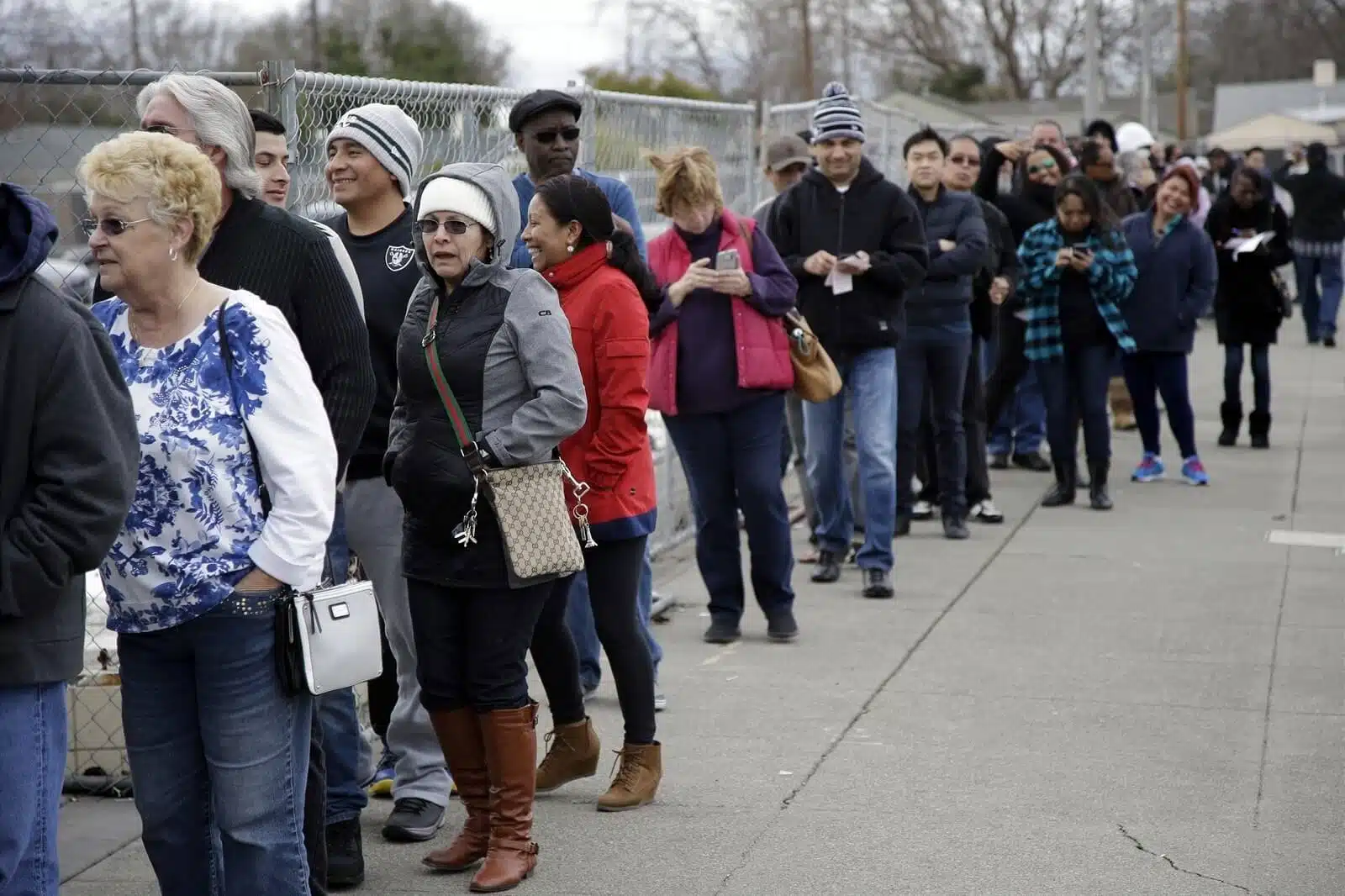 Řada lidí na lístky Powerball před trafikou v Kalifornii
